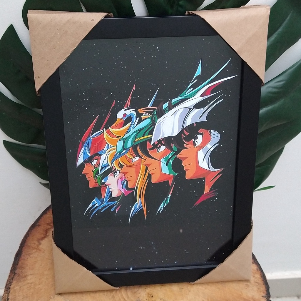 Quadro decorativo com moldura e vidro Os Cavaleiros do Zodíaco Seiya Shiryu Hyoga ikki anime pôster