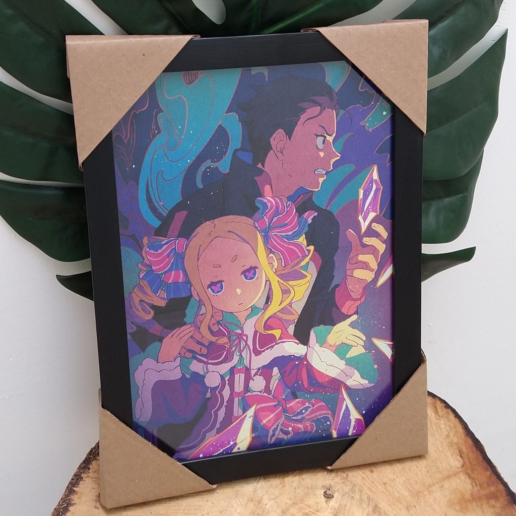 Quadro decorativo com moldura e vidro Re Zero anime pôster geek