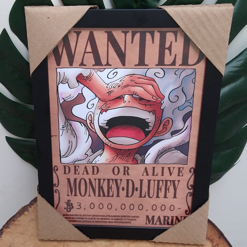 Quadro decorativo Wanted Luffy Gear 5 Zoro Sanji One Piece com moldura e vidro pôster anime geek