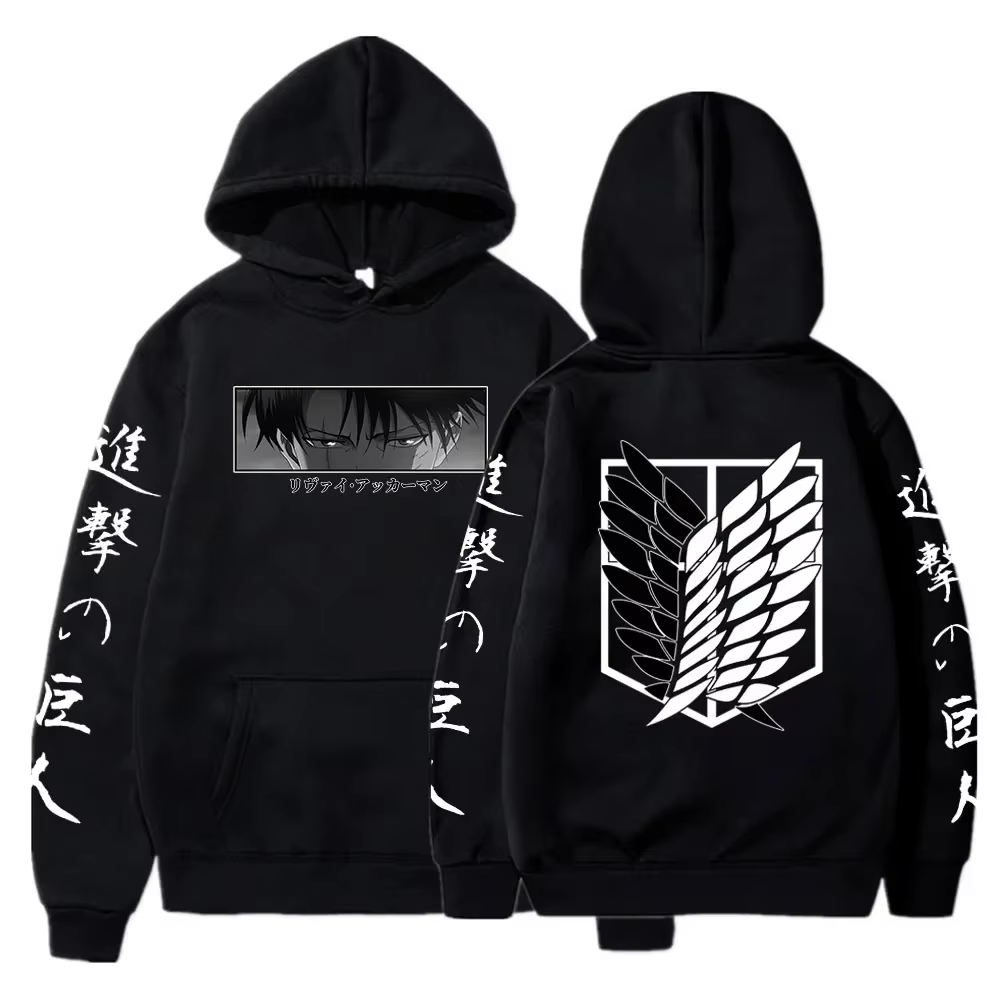 Quente anime ataque em titã hoodies impressão com capuz roupas masculinas moletom harajuku comprimento regular bolso frontal detalhe manga longa