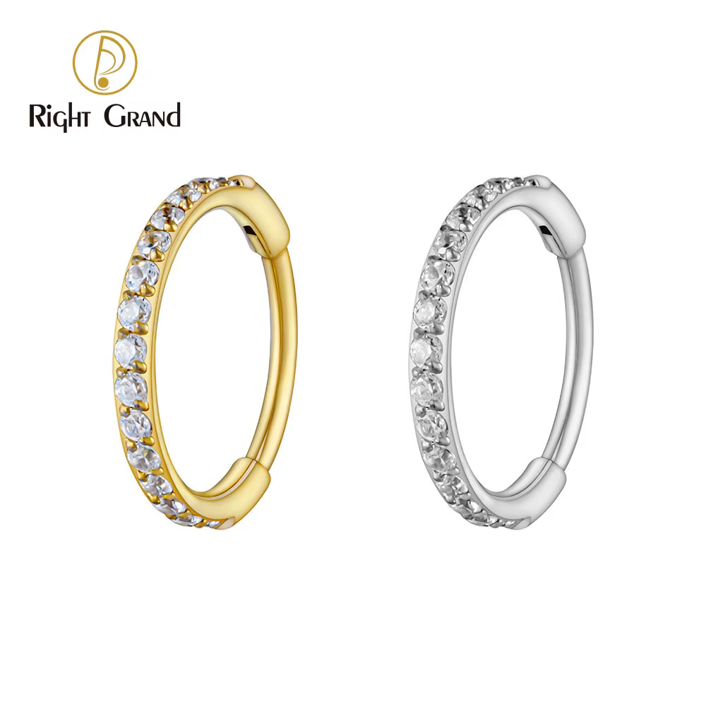 Right Grand ASTM F136 Titânio 16G Brinco de Argola Slim Huggie 6mm 8mm 10mm 12mm Brinco Hipoalergênico Zircônia Cúbica Cartilagem Hélice Brinco Articulado Brinco Piercing Joia Corporal