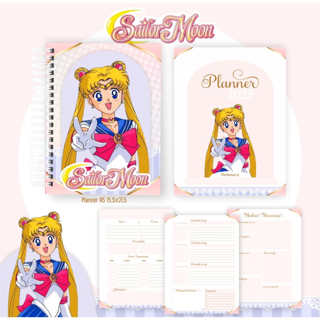 Sailor Moon Sakura Cardcaptor planner agenda A5 bloquinho a6 livro de colorir personalize com seu nome anime