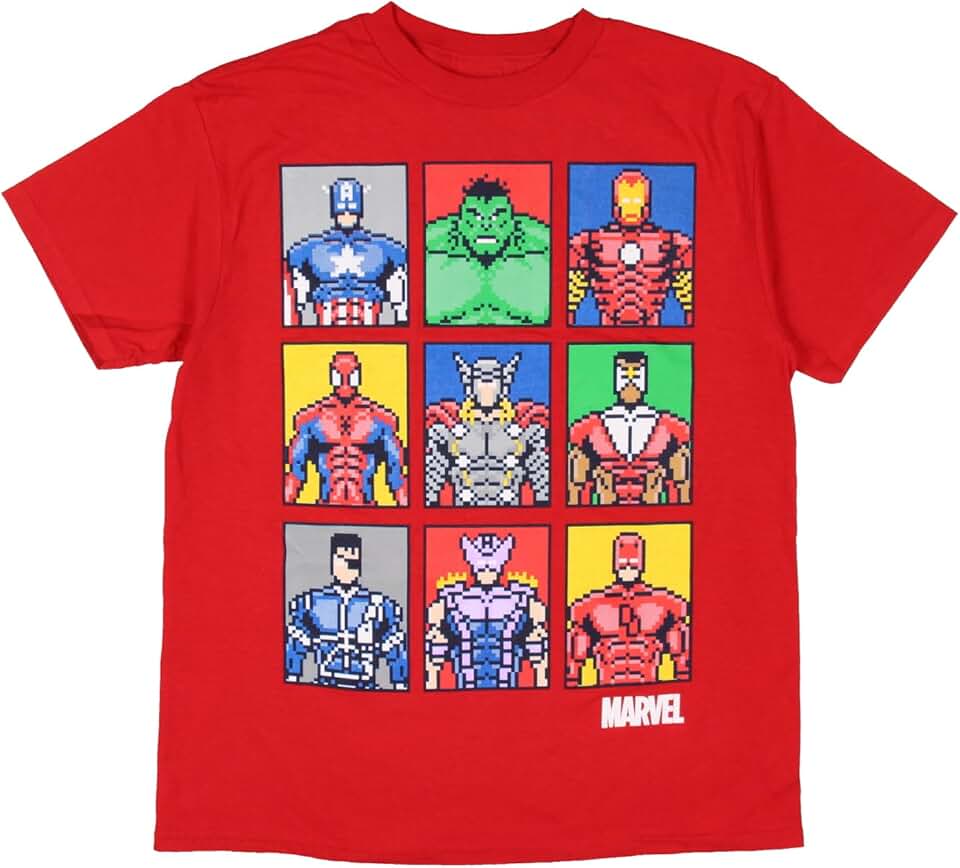 Seven Times Six Camiseta Marvel Big Boys Avengers Character Grid 8-Bit Pixel Art Graphic Print