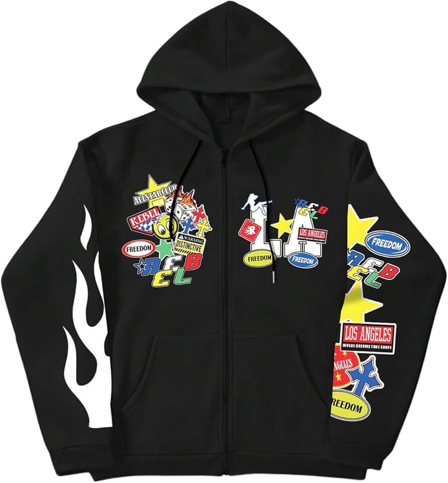 SOLY HUX Moletom masculino com capuz Y2k Graphic Zip Up com cordão e manga comprida casual com bolsos
