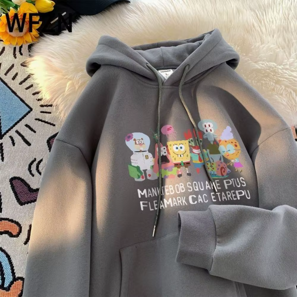 SpongeBob SquarePants Streetwear Hoodie Nickelodeon Graphic Print Oversized Loose Long Sleeve Pullover Unisex Trendy set Gift