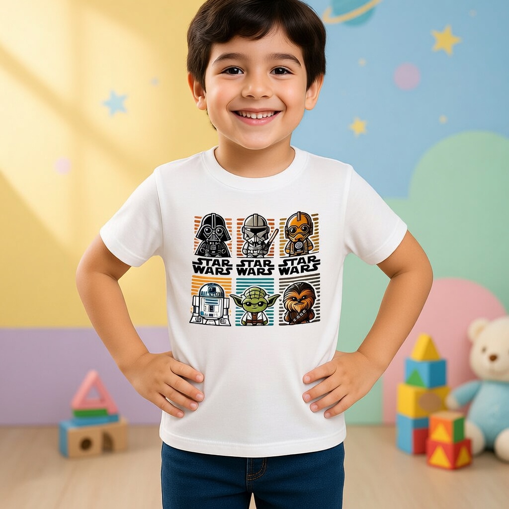 T-Shirt Infantil Star Wars | Moda Geek Kids com Estampa de Personagens Famosos