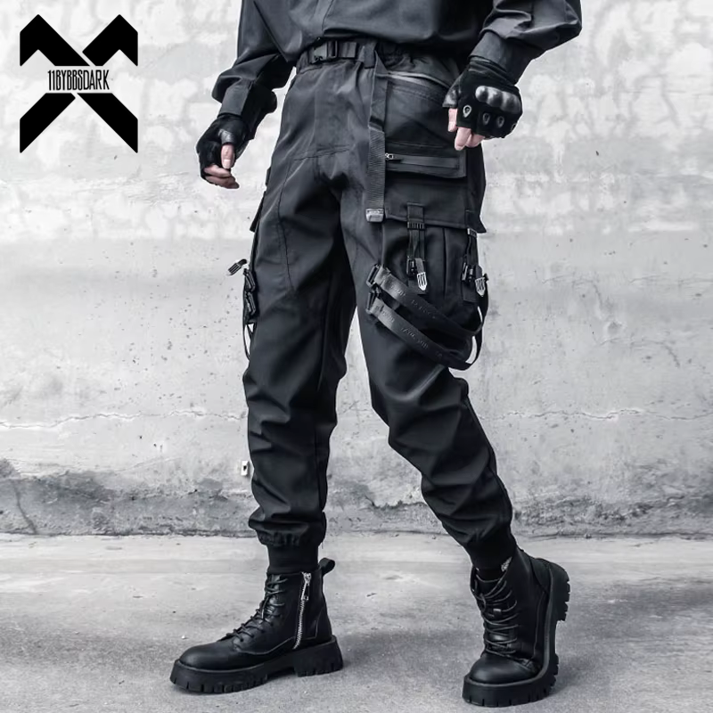 Techwear calças de carga funcionais moda masculina tático multi bolsos calças 2023 primavera hip hop streetwear preto