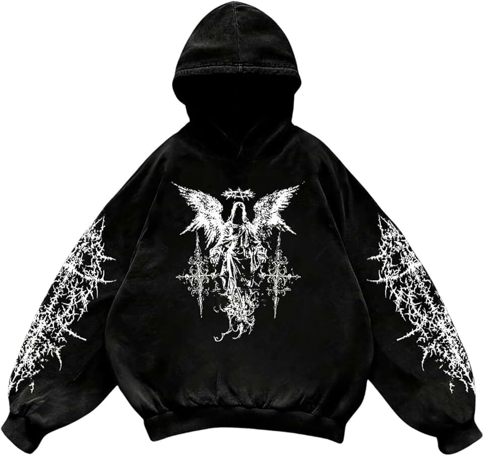 Verdusa Moletom masculino Y2k Gothic Graphic Moletom com capuz ombro caído streetwear pulôver tops