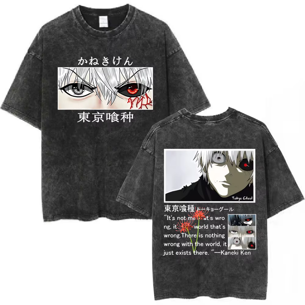 Vintage lavado anime tokyo ghoul t camisa mangá legal ken kaneki olhos impressão camisetas unisex oversized gótico manga curta t camisas