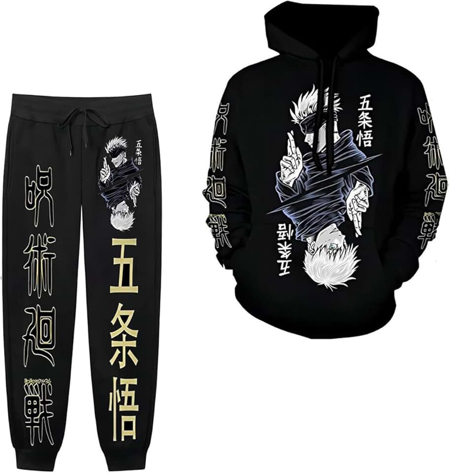 IOPBOT Moletom unissex anime jujutsu JJK cosplay fantasia masculina preta novidade 3D moletom com capuz pulôver casaco para mulheres (P-preto-2), Preto, P