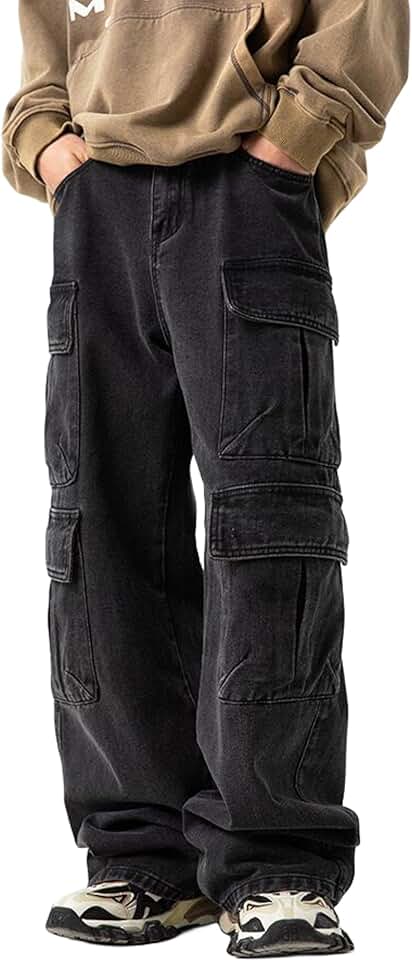 VOLYMOON Calça jeans cargo folgada Y2K Skater Vintage Lisa Jeans Grunge Causal Calça jeans de perna larga Streetwear