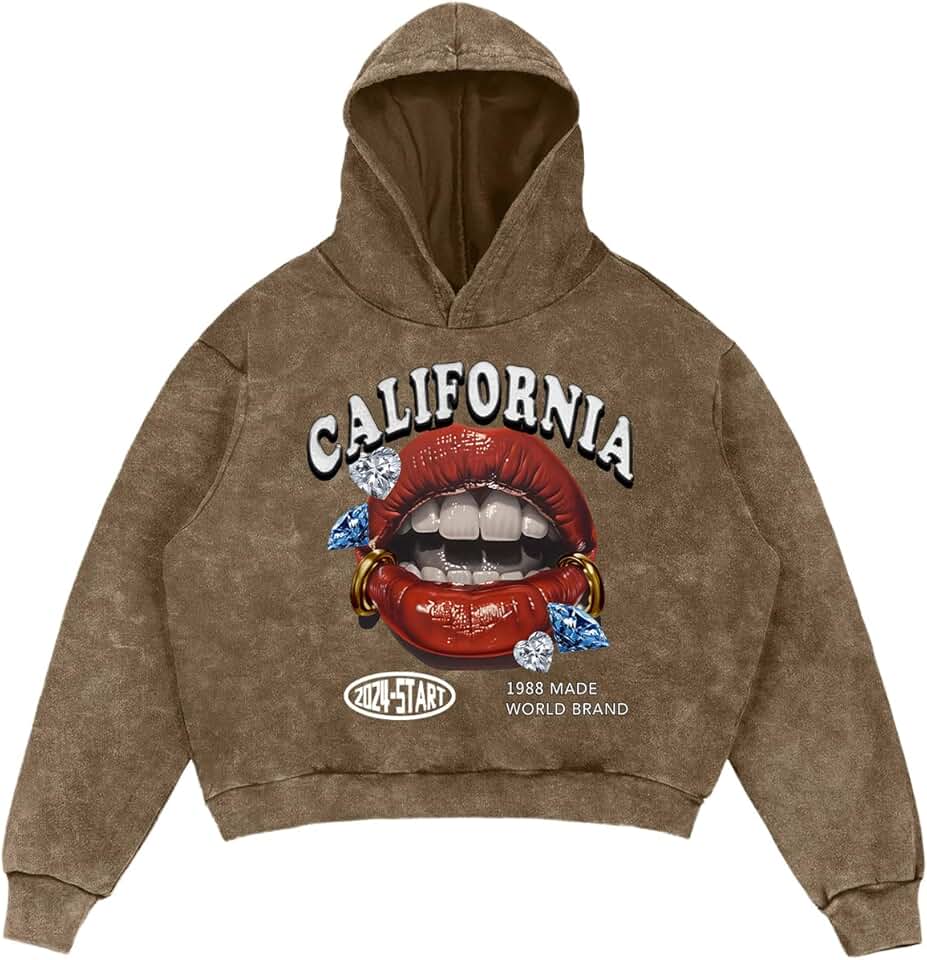 WDIRARA Moletom masculino com capuz Y2k Letter Graphic envelhecido manga longa vintage hipster ajuste solto