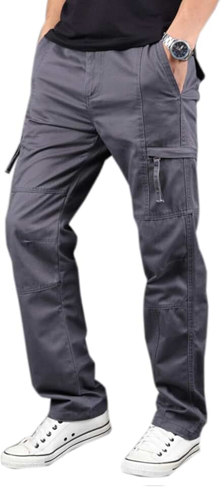 WSLCN Calça Cargo Masculina de Algodão Casual Trabalho de Perna Direita Multi-Bolso Cintura Elástica