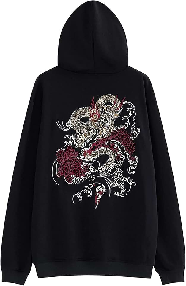 XYXIONGMAO Moletom masculino bordado streetwear dragão Techwear japonês preto hip hop gráfico moletom com capuz