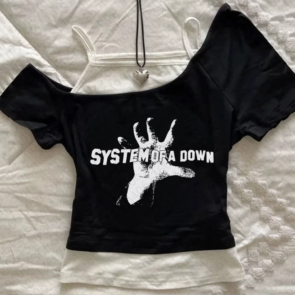 Y2k estilo gráficos gótico emo punk falso de duas peças fora do ombro camiseta vintage gótico feminino espartilho verão regata sexy