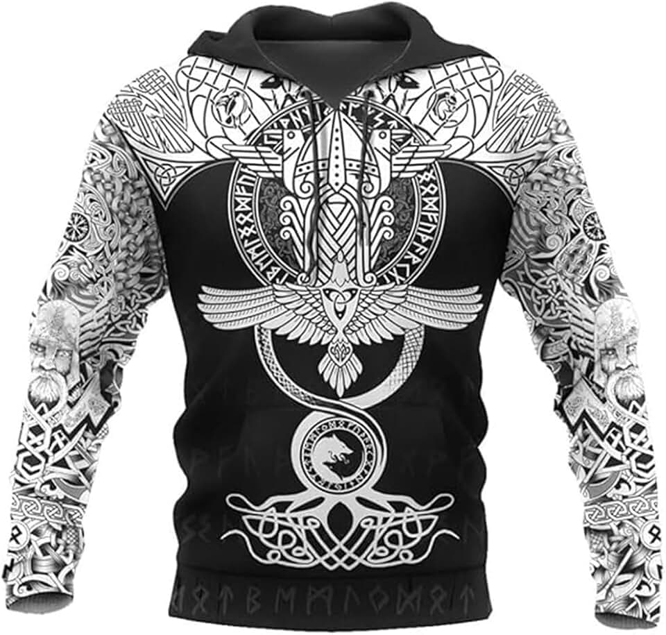 yayoitimes Moletom com capuz Celtic Raven, estampa 3D Viking nórdico, unissex, confortável, de poliéster, punk